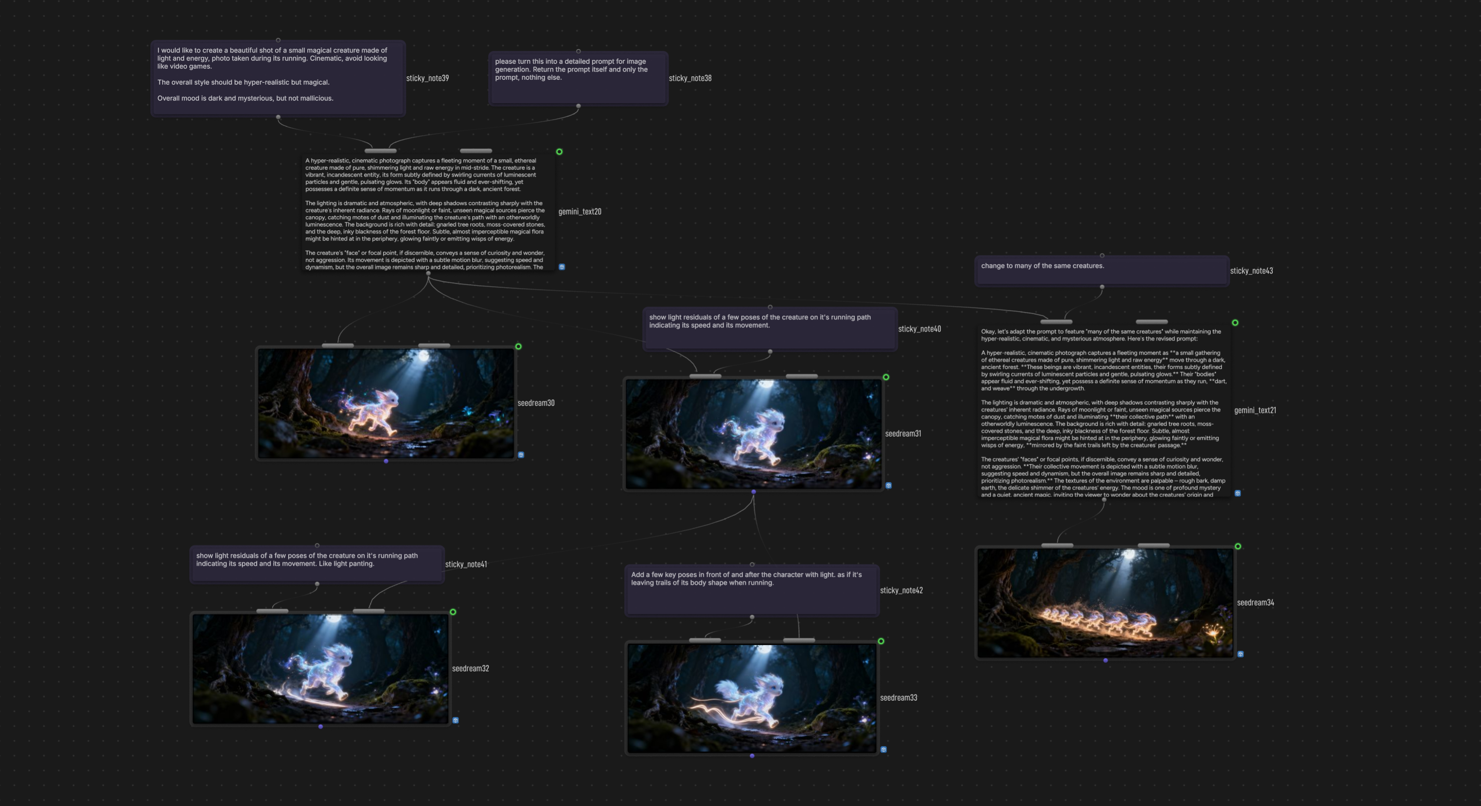 The first non-linear, visual environment for AI content generation. Create sophisticated workflows that can be saved, shared, and executed with a single click.